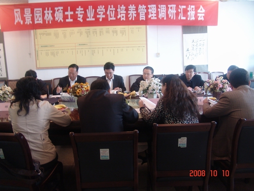 10月10日,以北京林业大学张启翔副校长为组长的全国风景园林硕士专业学位教育指导委员会专家组一行六人,对我校风景园林硕士专业学位研究生的培养与管理过程情况进行了为期一天的专项调研。
