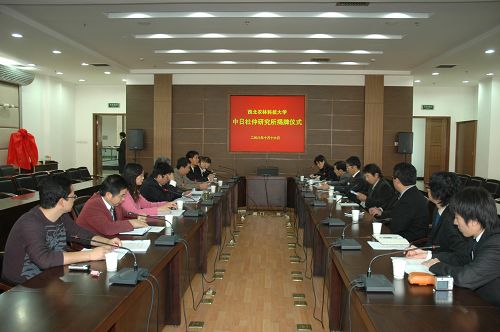 在揭牌仪式上,日本经济产业省新能源产业技术机构项目部部长粟本修慈先生首先介绍了研发项目情况。随后,吴普特副校长作了发言,他说,我校与日本大阪大学、日立造船株式会社自1994年以来,在杜仲资源利用、杜仲胶提取等方面进行合作研究,取得了较大进展。今天, “西北农林科技大学中日杜仲研究所”正式成立,该研究所实验室建在我校林学院,实验基地设在河南省灵宝市。今后我们会积极合作,通过该项目的研发,争取在杜仲胶研发方面取得新成果,为林业持续发展,资源循环利用以及新材料开发做出更大贡献。最后,吴普特副校长和日本造船产品研发中心常务董事古寺雅晴先生为西北农林科技大学中日杜仲研究所正式揭牌。