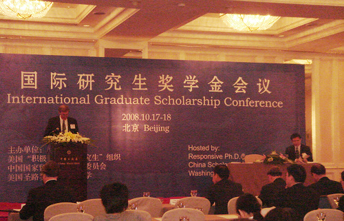 由国家留学基金委、美国“积极行动之博士”项目组和圣路易斯华盛顿大学联合主办的第四届国际研究生奖学金会议于10月17-18日在北京召开,会议主题为“研究生教育的国际合作”。美国哈佛大学、耶鲁大学、芝加哥大学等15所国外高校和清华大学、浙江大学、吉林大学、同济大学和我校等45所国内高校的100多位代表参加了会议。