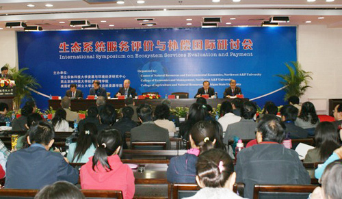 10月26日上午,由我校资源与环境经济研究中心、经济管理学院、美国密西根州立大学农业与自然资源学院共同主办的“生态系统服务评价与补偿国际研讨会在我校国际交流中心207室隆重举行。陕西省政府副秘书长史俊通、我校副校长侯曦、密西根州立大学林学系主任Daniel Keathley、陕西省水土保持局法规处处长宋晓强等人出席开幕式并致开幕辞。来自密西根州立大学、纽约州立大学、世界林业中心、国家林业经济研究中心、北京林业大学、浙江林学院、国家海洋局第一海洋研究所等国内外知名大学和研究所的专家、教授以及我校师生代表300余人参加了开幕式。