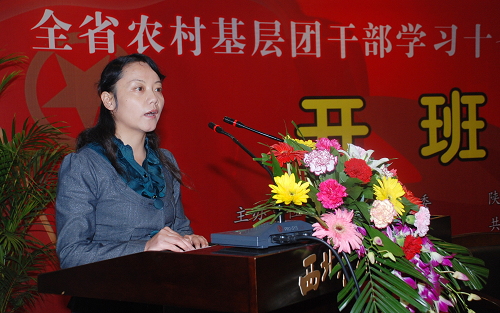王革、史小平分别在开班仪式上致辞,张岗领作了讲话。学员代表团丹凤县委书记叶敏在发言中表示会珍惜此次培训机会,加强相互之间交流和沟通,学有所成。团省委书记卫华在讲话中希望学员要充分认识本次培训的重要意义,珍惜这次难得的机会,认真学习十七届三中全会精神,深入分析探讨区域化推进农村共青团工作的思路,理论联系实际,努力开创农村共青团工作新局面。开班仪式后,团中央农村青年工作部副部长李海峰为学员们作了《农村共青团工作新思路》的报告。