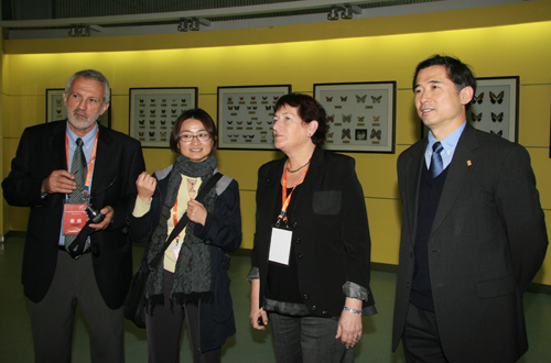 11月4日,以色列农业与乡村发展部副部长沙亚安一行,在侯曦副校长的陪同下兴致勃勃的参观了我校博览园。在博览园,沙亚安副部长仔细观看着每一件充满奇趣的展品,她留言赞叹博览园展览形式震憾,把学术世界和自然世界联系在一起,并称赞昆虫博物馆的创始人周尧先生是一位非常了不起的学者。