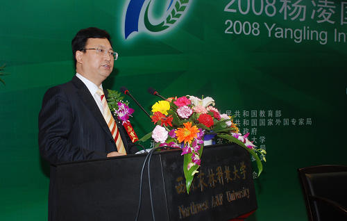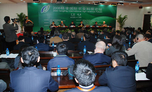 2008年11月5上午,以“循环农业: 科学•技术•政策”为主题的2008杨凌国际农业科技论坛在我校国际交流中心隆重开幕。论坛由中国教育部、国家外国专家局和陕西省人民政府主办,以色列农业与农村发展部、英国研究理事会为支持单位,我校、陕西省外国专家局、杨凌农业高新技术产业示范区管委会承办。来自英国、以色列、澳大利亚、美国等国家的40余名专家和代表,以及国内20余所农业院校和科研单位的50余位专家学者参加了论坛。