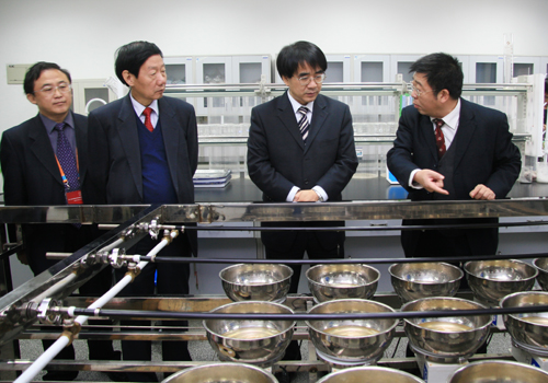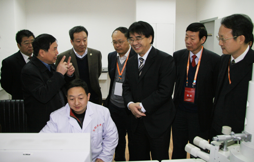 张来武一行首先考察了我校生物技术平台。在孙武学校长、赵忠常务副校长和吴普特副校长的陪同下,张来武一行听取了康振声、王华岩、张涌、吴普特、张改生等专家关于各自平台的介绍,并详细了解了平台的建设和运行情况。