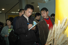第十五届农高会上,我校展区熙熙攘攘,人潮涌动。许多参观者急切的寻找到这里,并欣喜的拿出“各式工具”记录我校的农业科技新成果:油笔、纸,到大量的手机、照相机、摄像机。这种现象,一方面反映了参观者对农业科技成果的重视和渴望,对我校的信任,另一方面也反映了社会的巨大进步。