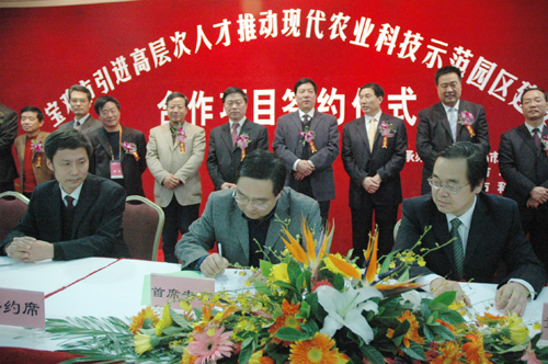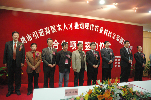 为了进一步细化落实我校与宝鸡市、杨凌示范区管委会三方的框架协议内容, 11月6日下午,宝鸡市引进高层次人才推动现代农业科技示范园区建设合作项目签约仪式在杨凌国际会展中心举行,陕西省副省长、杨凌示范区管委会主任姚引良,我校副校长李华,宝鸡市委书记唐俊昌,市长戴征社,副市长王拴虎等出席签约仪式。