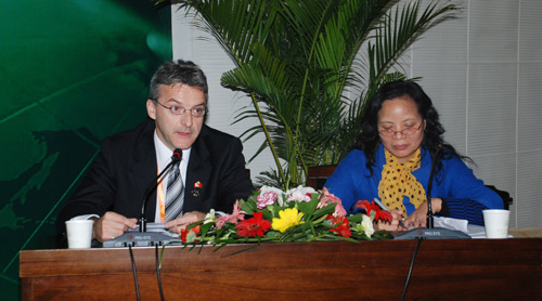 我校郑粉莉教授和拉瓦尔大学Jean—Paul Laforest教授主持大会发言