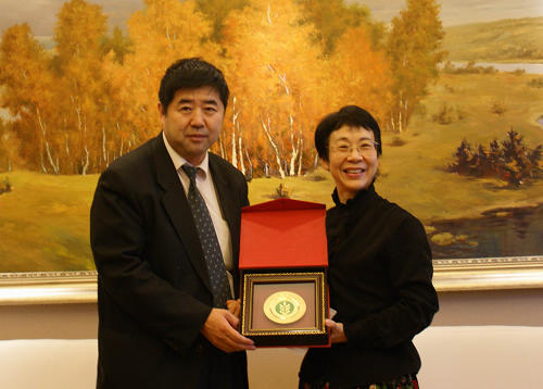 王革同志向重庆大学党委副书记赵修渝赠送礼品