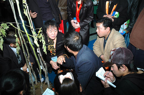 农高会期间,单核桃高接换优技术就有三千多人咨询,群众接连不断地现场请教、索要名片、观看录像、购买光碟,我校核桃专家翟梅枝博士成了最忙碌的人之一。