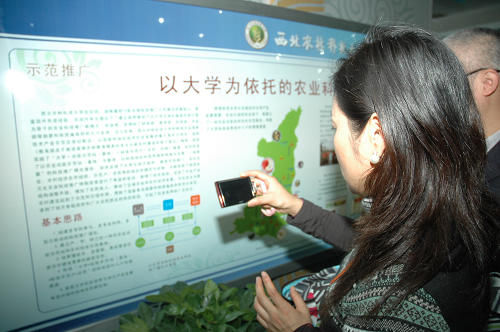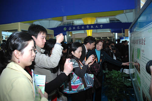 我校探索建立的“政府推动下,以大学为依托基层农技力量为骨干的农业科技推广新模式”受到了特别关注,参加农高会的教育部直属高校的很多负责人前来参观了解。西安市曲江新区管委会有关负责人表示要利用该模式与我校进行合作.