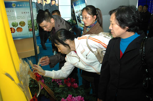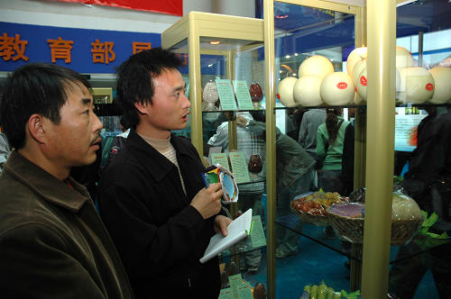 本届农高会,我校展区有六处成为广大参观者关注的热点:一是农业科技书籍,二是奇特的鱼虾,三是核桃高接技术,四是沼气设备,五是农业科技推广新模式,六是各种成果实物。