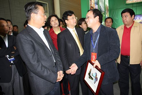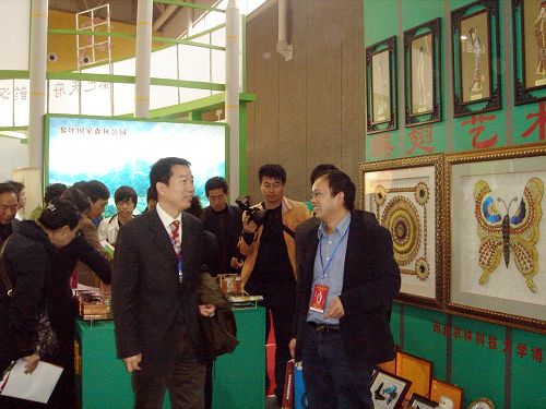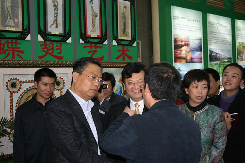 10月31日开幕式之后,陕西省副省长景俊海来到杨凌展区,对博览园给予了充分肯定,并对蝴蝶工艺品给予了较高的评价。