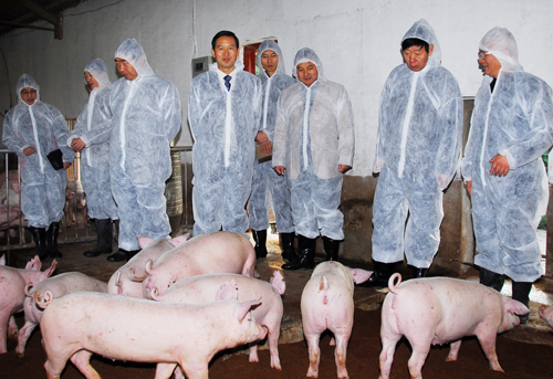 考察华中农业大学试验猪场