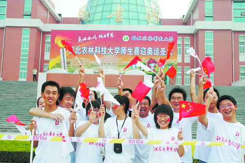7月3日,举世瞩目的奥运火炬走进校园,整个校园成了欢乐的海洋。广大师生以火热的激情和严密的组织工作,共同迎接“圣火”,确保了火炬的顺利传递,向海内外观众展现了我校师生员工的精神风貌,扩大了学校对外影响、提升了学校声誉。