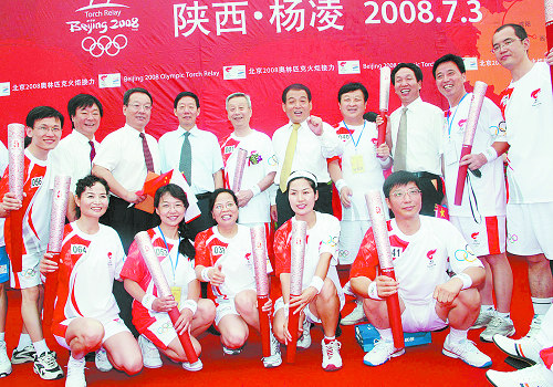 校领导与我校部分火炬手合影留念,共同祝福北京奥运