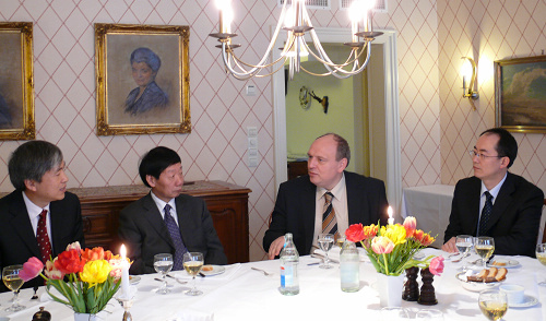 2月12日,代表团考察访问了慕尼黑技术大学,与慕尼黑技术大学副校长Liqiu Meng 教授、国际交流中心主任Christoph Steber、生物学院部分教授及国际留学生进行了座谈。慕尼黑技术大学与我校建立了校际合作关系,是德国排名前三名的精英大学。慕尼黑技术大学代表向代表团介绍了林学硕士项目、园艺学硕士项目、国际研究生院项目以及双方科研合作项目的进展情况和下步设想,双方就留学生选拔、导师选择、团队交流、接收慕尼黑技术大学留学生和学生实习、中德科技年活动等事宜进行了具体而深入的磋商。他们表示可接收我校青年教师跟班上课并随堂试讲,逐步培养我校师资;愿意为我校留学的优秀硕士和优秀青年教师提供博士岗位;希望和我校联合申请德国科技部新近设立的土地管理和利用项目;同时希望利用2009年“中德科教年”,结合杨凌农高会和杨凌国际农业科技论坛,精心策划,共同组织活动。双方代表还签署了科研项目合作协议。