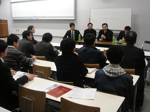 在东京,代表团专程拜会了中国驻日本大使馆教育处,汇报学校国际合作与交流、人才强校战略实施、海外杰出人才引进政策与措施、教师队伍补充计划等情况,了解日本教育及在日华人基本情况,并请使领馆协助学校物色选拔优秀留学人员回国来校工作。孙建明公使参事及教育处官员会见了杨景昆副书记一行,并就我校海外人才引进交换了意见,提出了建议。全日本中国留学人员友好联谊会(全日本中国留学生学友会)负责人还专程到宾馆拜访了我校代表团,介绍了在日华人学者基本情况。全日本中国留学人员友好联谊会(全日本中国留学生学友会)及时在其相关网站上发布了我校人才招聘的相关信息和代表团访问日程,筑波大学、东京农工大学、名古屋大学等3个全日本中国留学人员友好联谊会也分别在各自网站公布了我校招聘信息并协助我校组织了座谈会。在东京农工大学,我校代表团与来自东京地区的30余名留学生代表举行了座谈会。