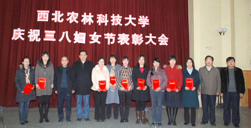 另悉,“三八”节期间,我校王华、南红梅获得杨凌示范区“三八红旗手”称号;校医院和工会女工委分别获得示范区“巾帼文明示范岗”和“优秀基层妇女组织”称号;张晓绒、李小梅、龙明秀分别获得“优秀妇女干部”、“和谐家庭”和“敬老孝亲模范”称号,并于3月6日受到示范区妇联的表彰。