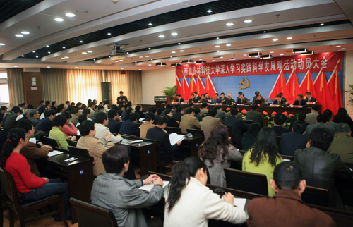 3月16日下午,我校“深入学习实践科学发展观”活动动员大会在国际交流中心隆重召开,标志着我校深入学习实践科学发展观活动全面展开。会议指出,开展好深入学习实践科学发展观活动,意义重大。会议要求,全校各级党组织和广大党员干部要进一步解放思想,振奋精神,以高度的政治责任感和历史使命感,精心组织,认真负责,周密部署,扎实工作,确保学习实践活动取得实实在在的效果,为创建以产学研紧密结合为特色的世界一流农业大学做出贡献。