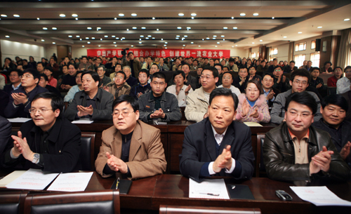 教育部部属高校学习实践科学发展观活动指导检查第十二工作组组长侯杰昌,副组长钱一呈、郑造桓、王铁琨,联络员黄伟及工作组成员韩公营、康金勇、毛永强同志出席大会,工作组组长、武汉大学原校长侯杰昌在动员大会上作了重要讲话。我校深入学习实践科学发展观活动领导小组组长、校党委书记张光强作了题为《突出产学研紧密结合办学特色 创建世界一流农业大学》的动员报告,我校深入学习实践科学发展观活动领导小组办公室副主任、党委副书记徐养福就我校学习实践科学发展观活动筹备情况和学校深入学习实践科学发展观活动实施方案作了说明。大会由我校深入学习实践科学发展观活动领导小组办公室主任、党委常务副书记王万忠主持。全体校领导、校党委委员、纪委委员、民主党派负责人、无党派代表、全体党员处级干部、全校各党支部书记等500余人参加大会。