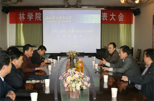座谈会上,项目主持人、常务副校长赵忠教授向曹文仲副厅长一行详细介绍了我校“苦杏仁深加工技术与综合开发利用” 项目研究进展情况,并与考察团一行就双方下一步合作开发事宜进行了充分交流,座谈成效显著。双方一致认为“苦杏仁深加工技术与综合开发利用”项目研究成果科技含量高,具有良好的经济、社会和生态效益,为我国北方干旱地区农业产业结构调整探索出了一条新路,应尽快推广并产业化。