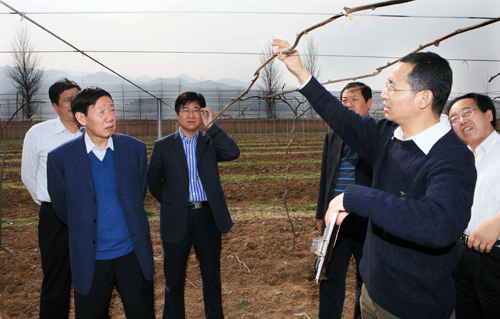 3月17日下午,孙武学校长在推广处、园艺学院负责人陪同下,赴眉县青化我校猕猴桃试验示范站检查指导工作。