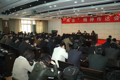 王万忠同志在最后的讲话中要求全校上下要迅速掀起学习贯彻“两会”精神的热潮,进一步把思想和行动统一到中央的各项重大决策部署上来。他强调,各单位各部门要把贯彻落实“两会”精神与学习实践科学发展观活动紧密结合起来,进一步认清形势,明确任务,全面正确了解国情校情,积极谋划学校发展的新思路和新举措,立足本职工作,以高度的责任感和使命感,开拓创新,扎实工作,为创建产学研紧密结合为特色的世界一流农业大学做出贡献。