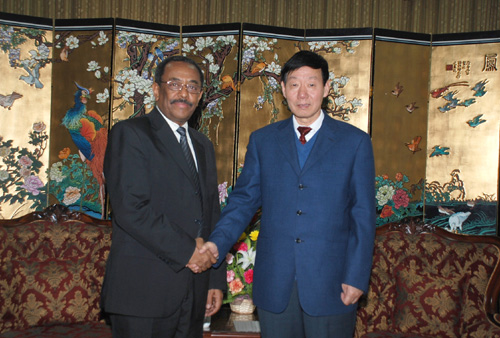 3月20日,埃塞俄比亚驻华大使海勒•科若斯•格塞斯先生一行5人访问我校。下午,孙武学校长在国际交流中心会见了海勒•科若斯•格塞斯先生一行,双方进行了亲切友好的交谈。