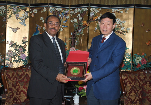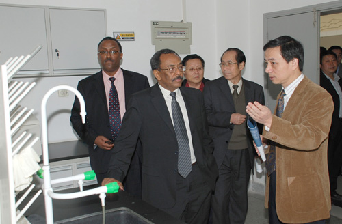 孙武学校长对大使的来访表示欢迎。他向大使介绍了学校发展历史,回顾了我校与埃塞俄比亚交流的情况,并介绍了我校有关国家奖学金的信息,希望进一步加强与埃方的合作。海勒•科若斯•格塞斯大使对孙武学校长的热情接待表示感谢,对孙武学校长进一步加强双方合作的提议表示赞同,并对我校赴埃塞俄比亚任教教师的工作和敬业精神大加赞赏。他简要介绍了埃塞俄比亚的情况,希望借鉴中国政府提供的奖学金使埃方的学生来校学习,也希望学校派人去埃塞俄比亚进行技术培训。