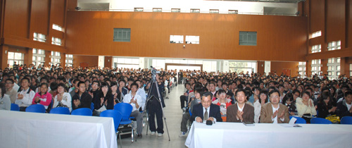 蔡方柏大使报告结束后,与同学们进行了互动交流,回答了同学们提出的诸如温总理访欧、达赖集团对中法关系的影响、对中法关系的预测等问题。在回答同学提出的“从事外交工作的是不是都是部分精英?作为在校大学生,今后想从事外交工作应具备哪些素质”问题时。蔡方柏大使语重心长地说:只有你始终有颗忠于祖国、忠于人民的坚定的心,任何人都可以从事外交工作。作为在校大学生,除了要具备以上条件外,还要学习与外交有关的业务知识,要掌握好外语。蔡方柏大使的回答博得了在场师生长时间热烈的掌声。