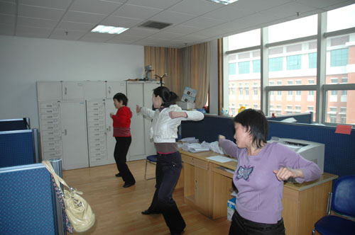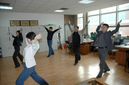 截止目前,第八套广播体操体育锻炼活动已进行3周。教职工普遍反映良好,认为既锻炼了身体,又在紧张工作之余得到了放松,一举两得。