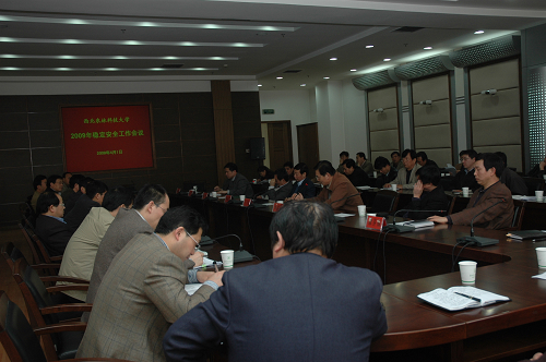 4月1日,学校召开2009年度学校稳定安全工作会议。校领导孙武学、赵忠、杨景昆、侯曦、张雅林、徐养福以及各学院(系、所)、机关处室、直属(附属)单位负责人参加会议。孙武学校长主持会议。