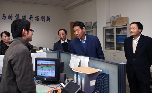4月2日上午,校学习实践领导小组组长孙武学校长到研究生院调研指导深入学习实践科学发展观活动。在座谈会上,孙校长听取了目前开展学习实践活动的基本情况,详细询问了活动中一些重点环节、主要任务的进展,并做了学习实践活动辅导报告。研究生院全体领导班子工作人员参加了座谈会。校党委副书记、校学习实践领导小组办公室副主任徐养福和工作组人员陪同进行调研。