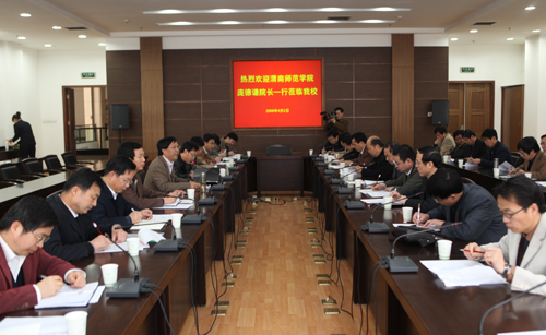 4月3日上午,渭南师院庞德谦院长率考察团一行30余人来校考察学习我校学习实践科学发展观活动、学科建设、人事改革等方面的做法和经验。校党委常务副书记王万忠、副书记徐养福等与考察团一行在国际交流中心210会议室进行了座谈。