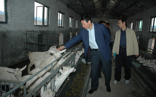 孙武学校长查看奶山羊生长情况