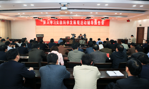 4月10日下午,校党委书记、学习实践科学发展观活动领导小组组长张光强在国际交流中心作了“深入学习实践科学发展观”的辅导报告。全体在校校领导,杨凌示范区管委会领导,各院(系)、部门负责人,校学习实践活动领导小组办公室各工作组全体成员,全体辅导员,杨凌示范区有关部门负责人,听取了报告,常务副书记、学习实践科学发展观领导小组办公室主任王万忠主持报告会。