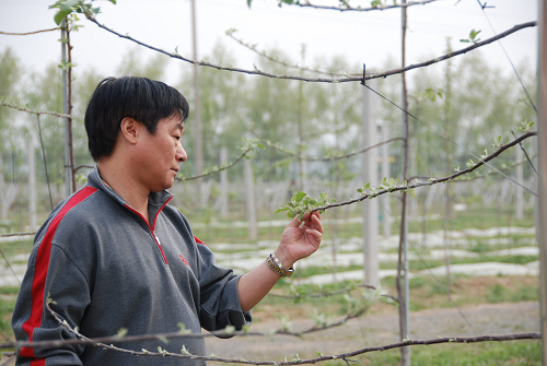 副校长李华查看白水苹果试验站果树生长情况