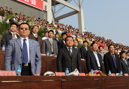 在学校相关部门的精心筹备下,我校2009年田径运动会于4月16日在北校区田径场开幕。校领导张光强、孙武学、赵忠、杨景昆、李华、张雅林出席了开幕式。