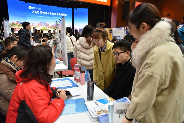 为认真落实学校关于进一步做好毕业生就业工作的指示精神,积极为硕士、博士毕业生和用人单位搭建高质量双选平台,11月28日,我校2020届硕博士毕业生专场招聘会在南绣山大厅成功举办。本次招聘会共有来自全国29个省(市、区)的138家用人单位携1.3万岗位需求现场揽才,我校820余名毕业生与用人单位达成签约意向,后续签约手续正在有条不紊进行。