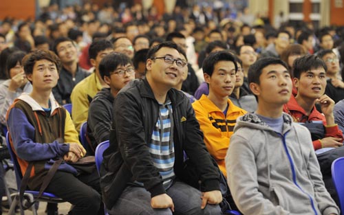 在整场报告会当中,老校长的讲话时时伴随掌声。在最后的互动环节中,各年级各专业学生代表与老校长进行互动,不仅涉及到我校目前状况,更有对我校未来发展的展望。