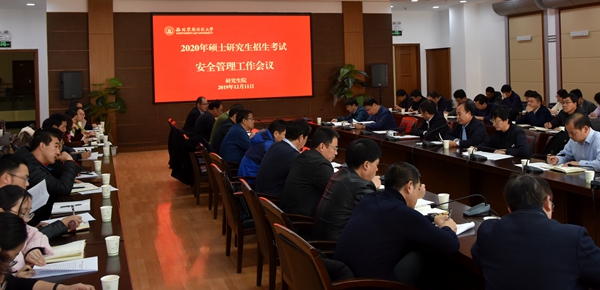 12月11日,我校召开2020年硕士研究生招生考试安全管理工作会议,安排部署2020年研究生招生考试我校考点相关工作。校长吴普特出席会议并讲话,要站在为党育人、为国育才的高度,扎实做好研究生招生考试各项工作。副校长、研究生院院长陈玉林主持会议。