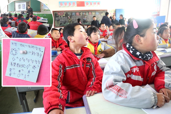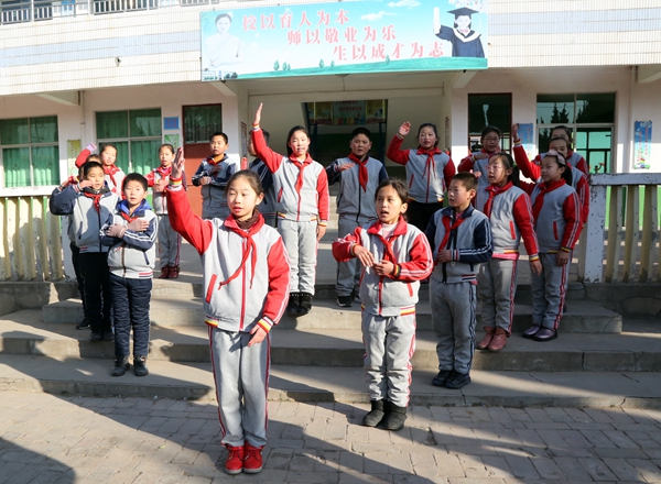 孩子们自发为前来看望慰问的老师们表演《感恩的心》