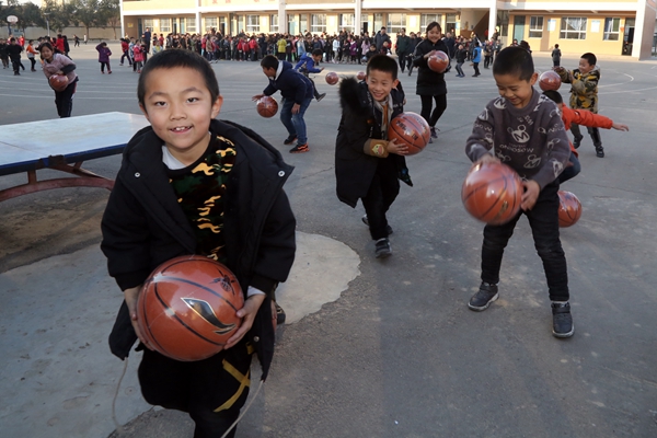 迫不及待领取文体用品的孩子们开心的玩耍