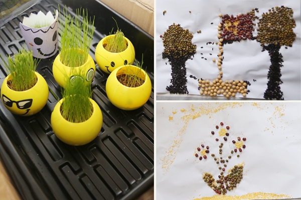 支教志愿者自制草头娃娃带领孩子们观察种子萌发,指导学生用种子作画,为孩子们种下“知农爱农”种子