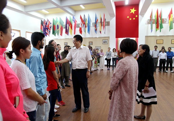 9月13日下午,副校长罗军来到国际学院亲切看望2016级外国留学生,并与新生合影留念。