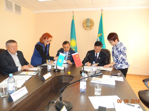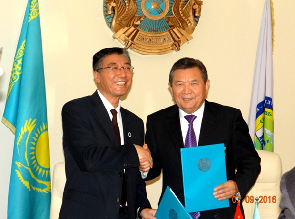 孙其信校长与哈萨克斯坦哈萨克国立农业大学校长TLEKTES YESPOLOV签署合作协议