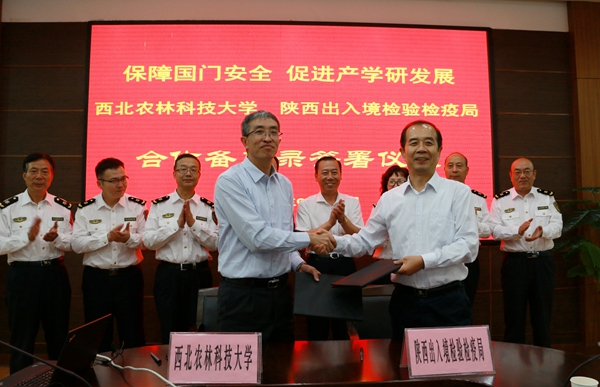 9月26日下午,西北农林科技大学与陕西出入境检验检疫局“保障国门安全 促进产学研发展”合作备忘录签字仪式在国际交流中心210会议室举行。我校副校长钱永华,陕西省出入境检验检疫局党组书记、局长徐良华,副局长陈茂盛出席仪式,我校党委常委、校长助理、科研院常务副院长韦革宏主持仪式。