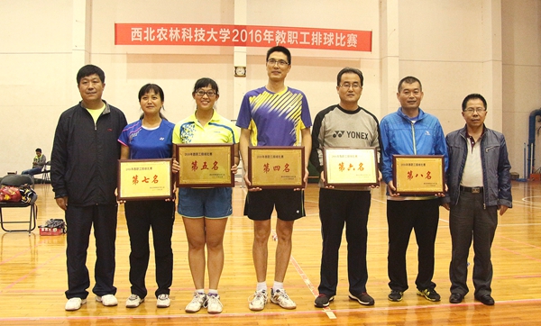 2016年我校教职工排球团体比赛于9月19日在北校区排球场举行, 27 日落下帷幕并举行颁奖,校党委副书记、校工会主席徐养福为获得前八名的代表队颁发奖牌。