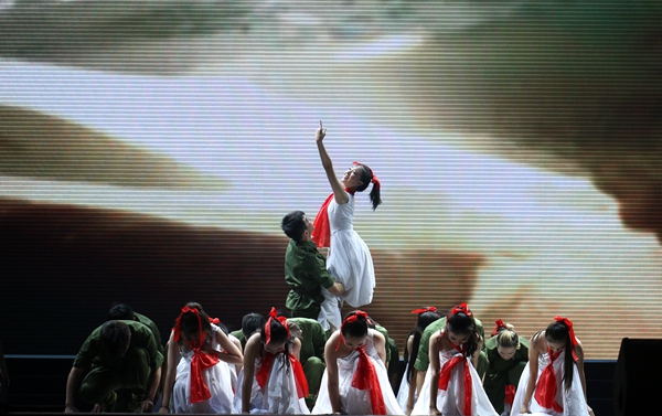 舞曲《一条大河》在舞蹈团的精心演绎下,时而汹涌澎湃,时而白波茫茫……从战争年代到如今的和平发展,67年之后,我们相聚西农,一同感受祖国母亲的伤疤与微笑,痛苦与欢乐。“若要盼得哟红军来,岭上开遍哟映山红,岭上开遍哟映山红岭。”《映山红》的歌谣回响在北绣大厅,悠扬婉转的歌词,仿佛一颗“火种”,激励着全校师生不断前行。