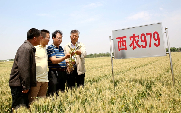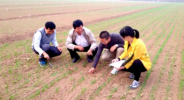 2016年5月18日王辉教授与同事助手等查看西农979在河南的生长情况